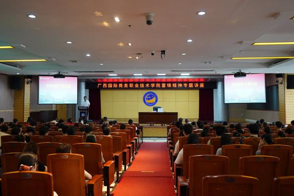 4月24日上午,以“雷锋,一座精神丰碑”为主题的雷锋精神专题讲座在广西国际商务职业技术学院举行。此次讲座特邀二级英模、雷锋杂志社宣讲团团长卜金宝作专题报告,雷锋宣讲团秘书长刘晓勇,学校领导、学校团委老师、二级学院团总支书记(负责人)、校级青马班学员、校级学生干部及二级学院学生代表共200余人参加。